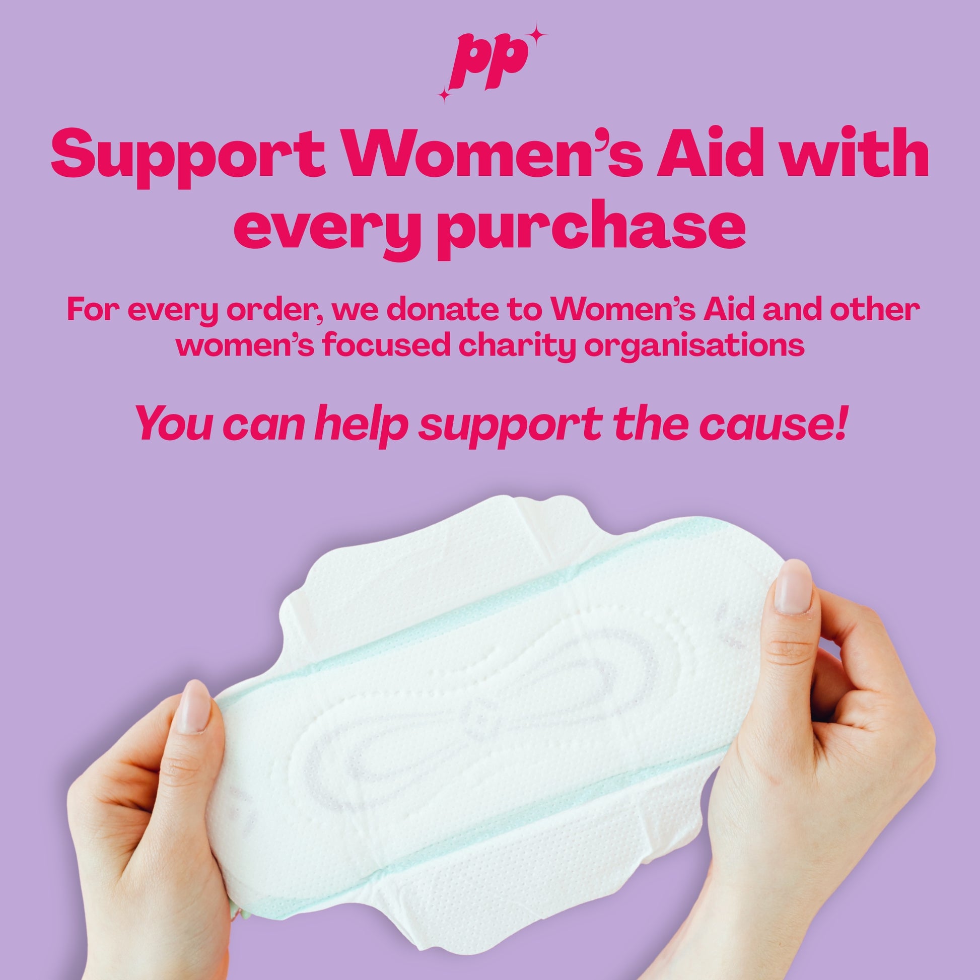 That’s why we created the Peffypads Subscription: every month, you’ll receive 20 whisper-soft, super-absorbent pads delivered straight to your door. They’re completely free — you only cover a small £3.99 total for shipping, service, and a contribution to Women’s Aid. 🎀